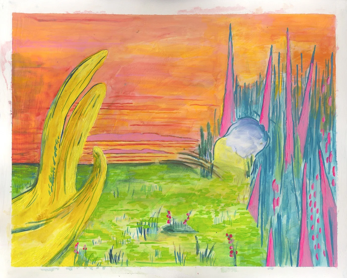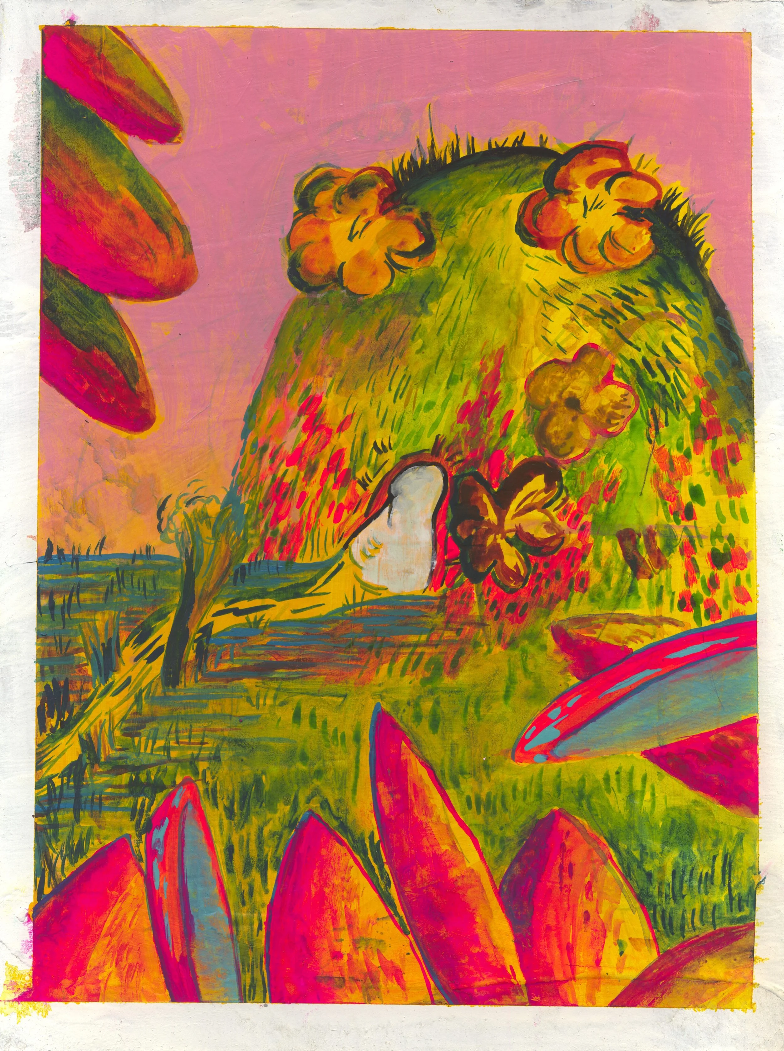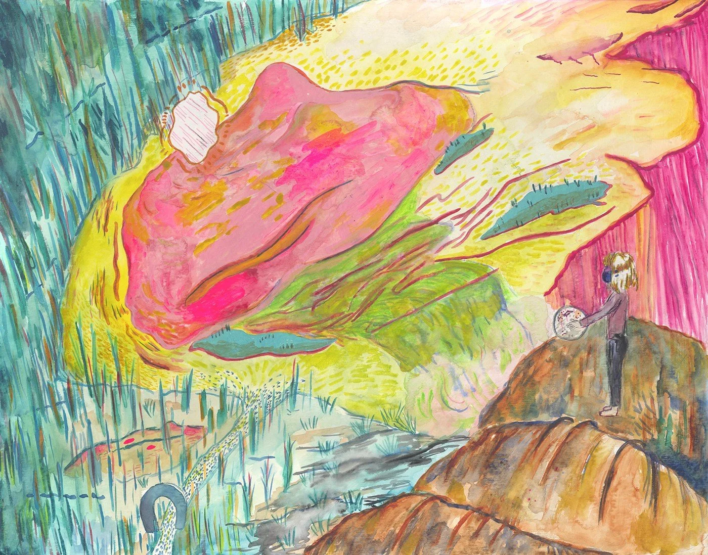 Creature Fear - pen, marker, acrylic paint, and ink on paper - 12 x 18 inches