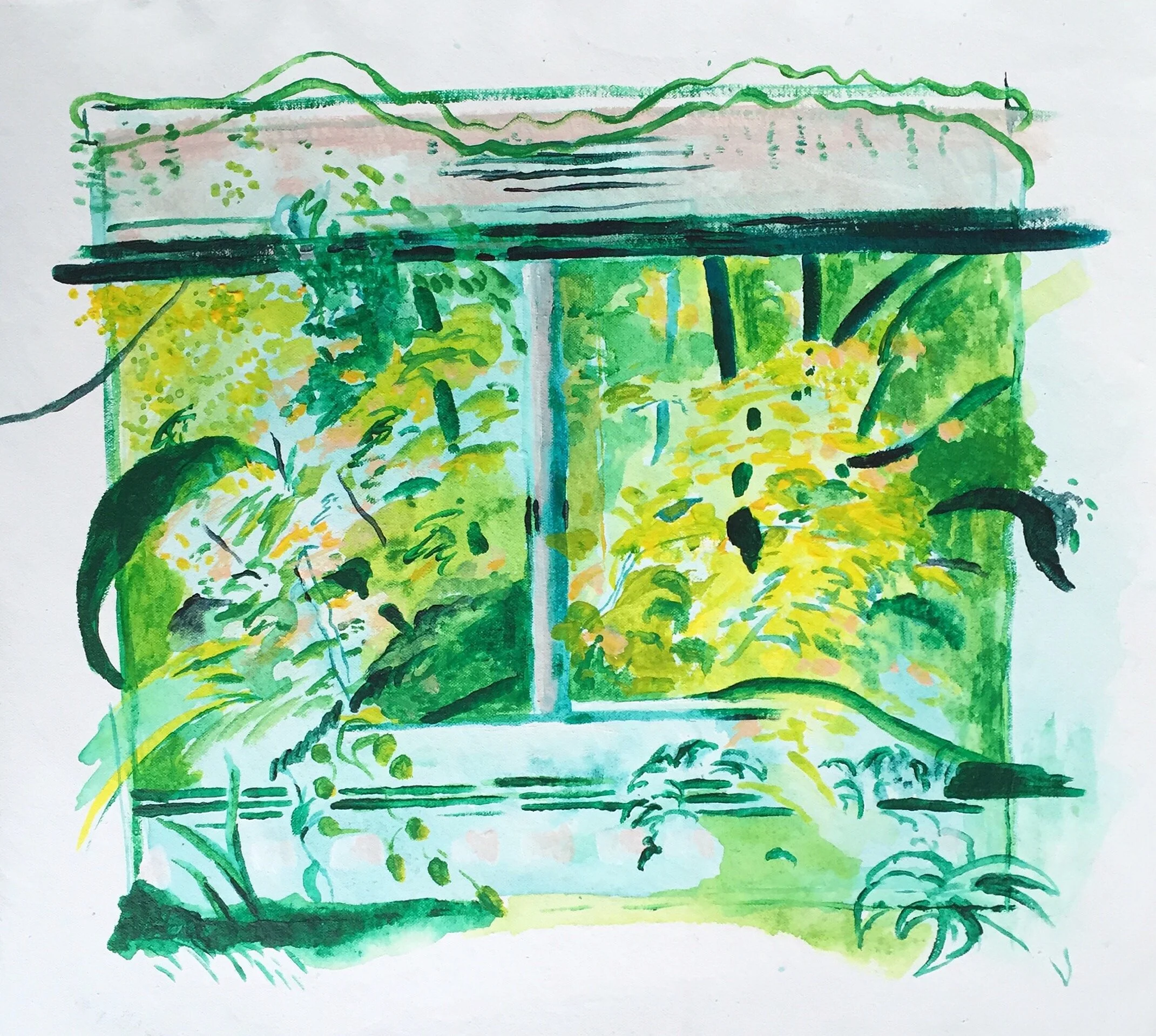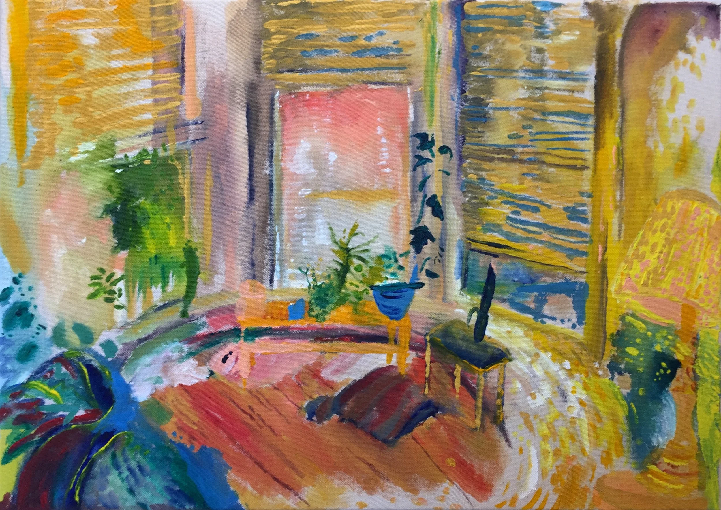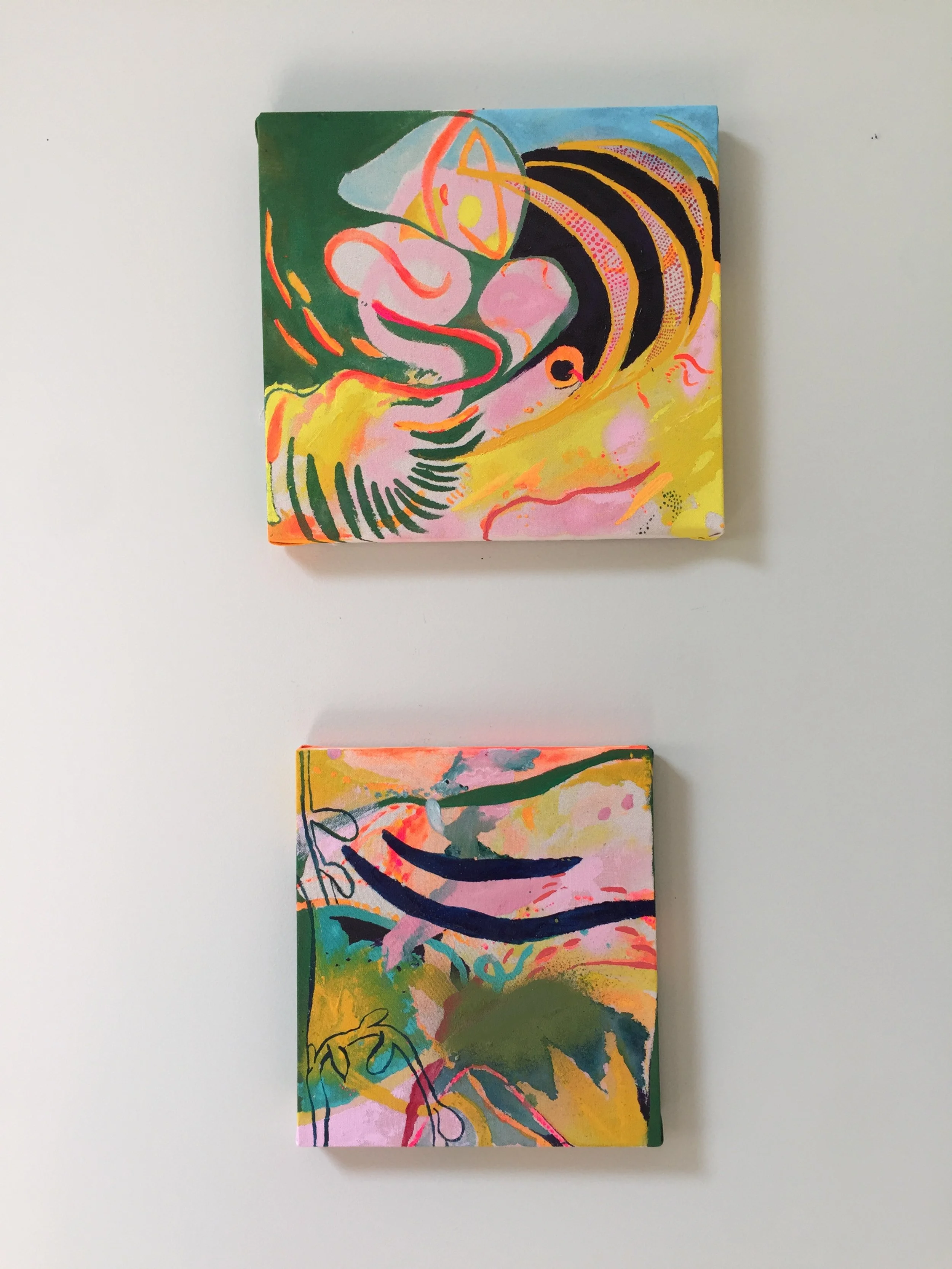 Fish Bowl Life - acrylic and gouache on stretched canvas - 36 x 36 inches