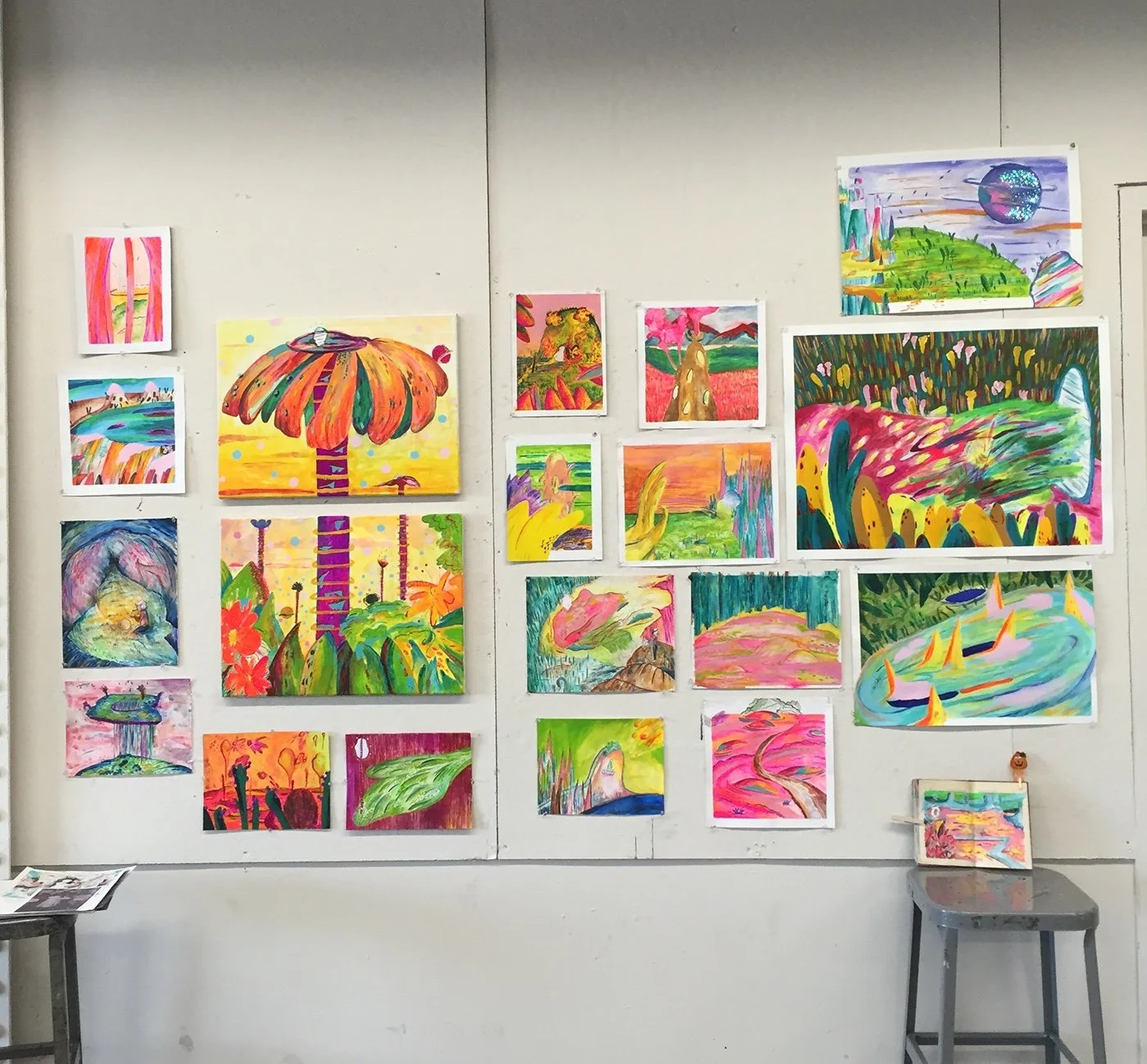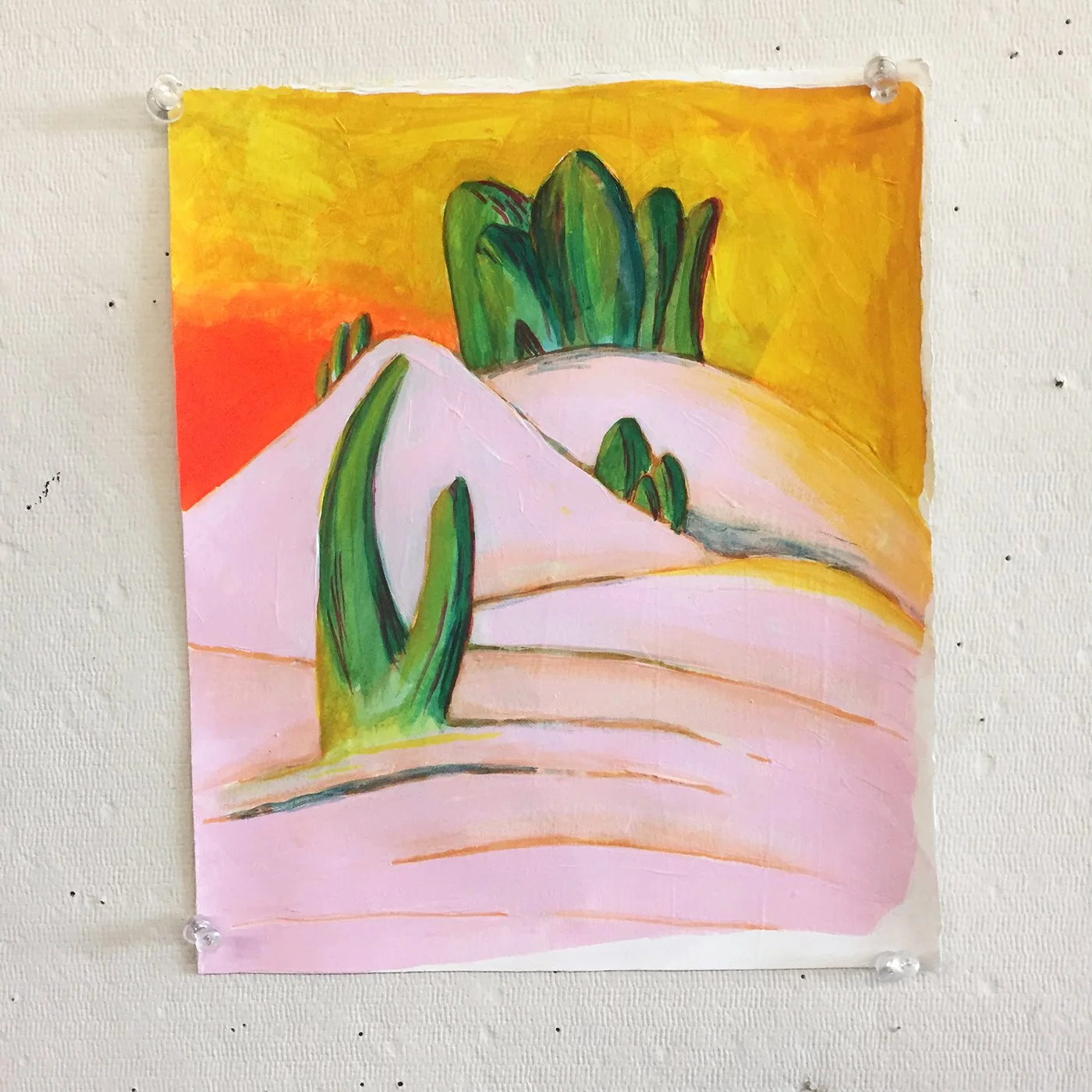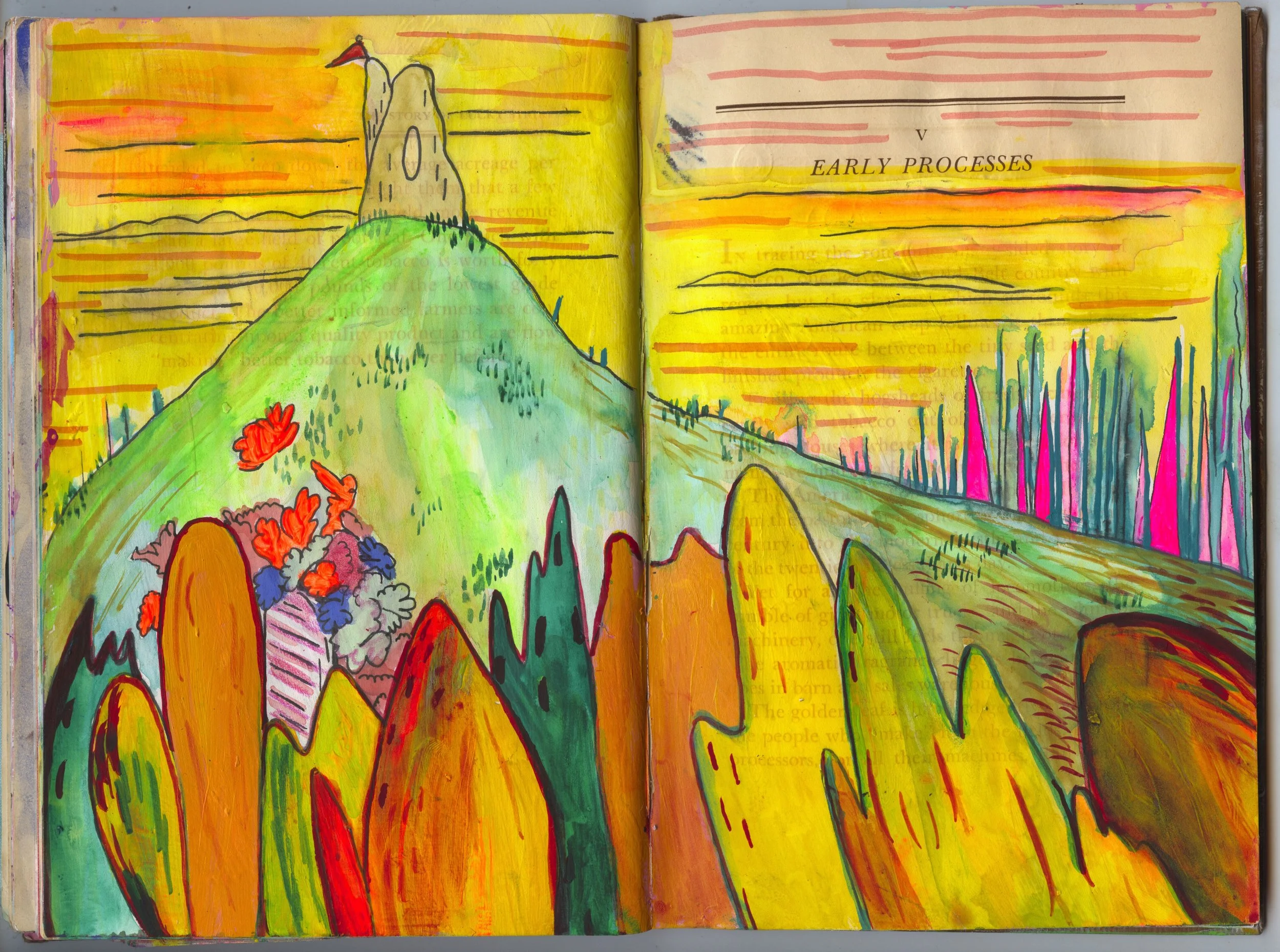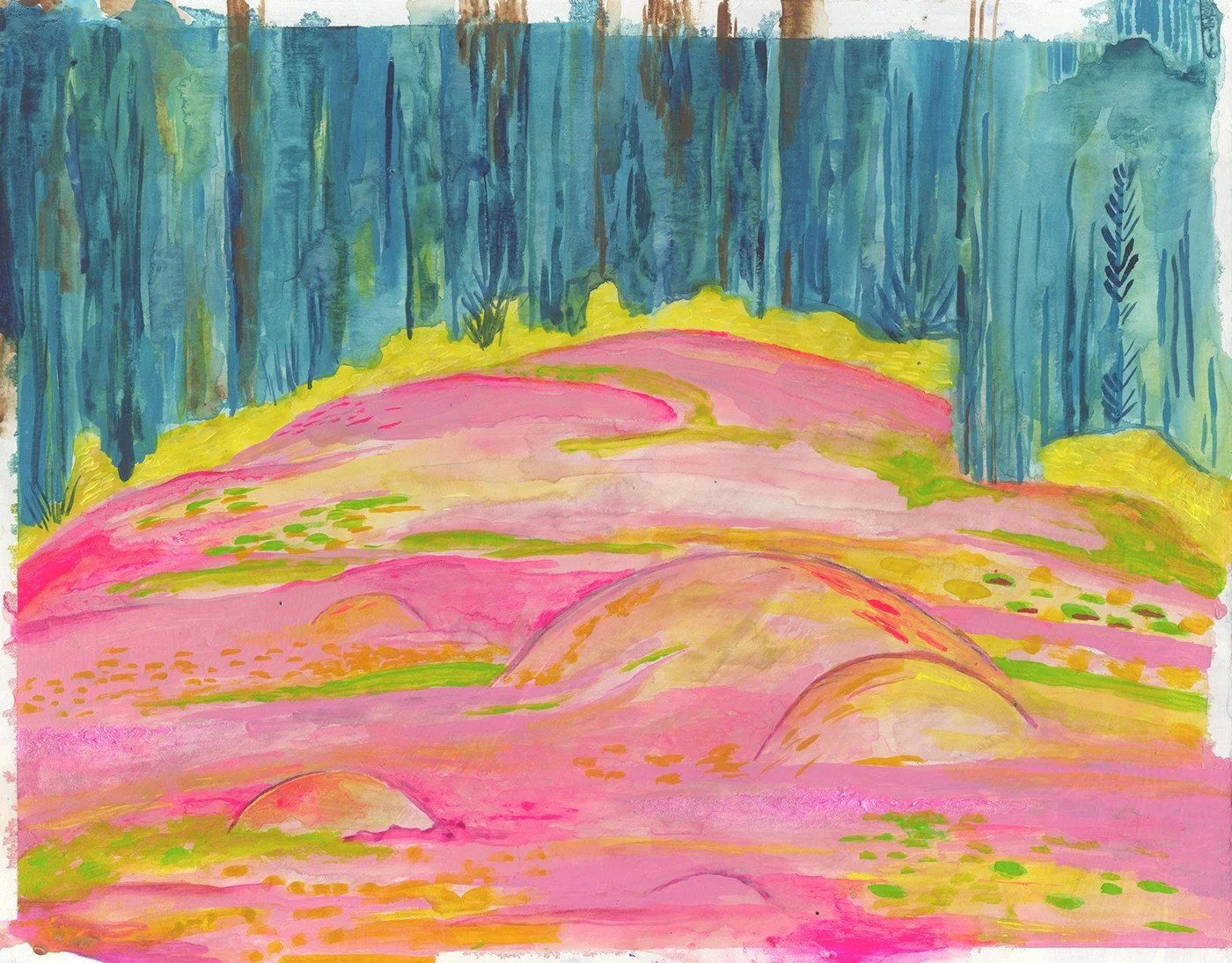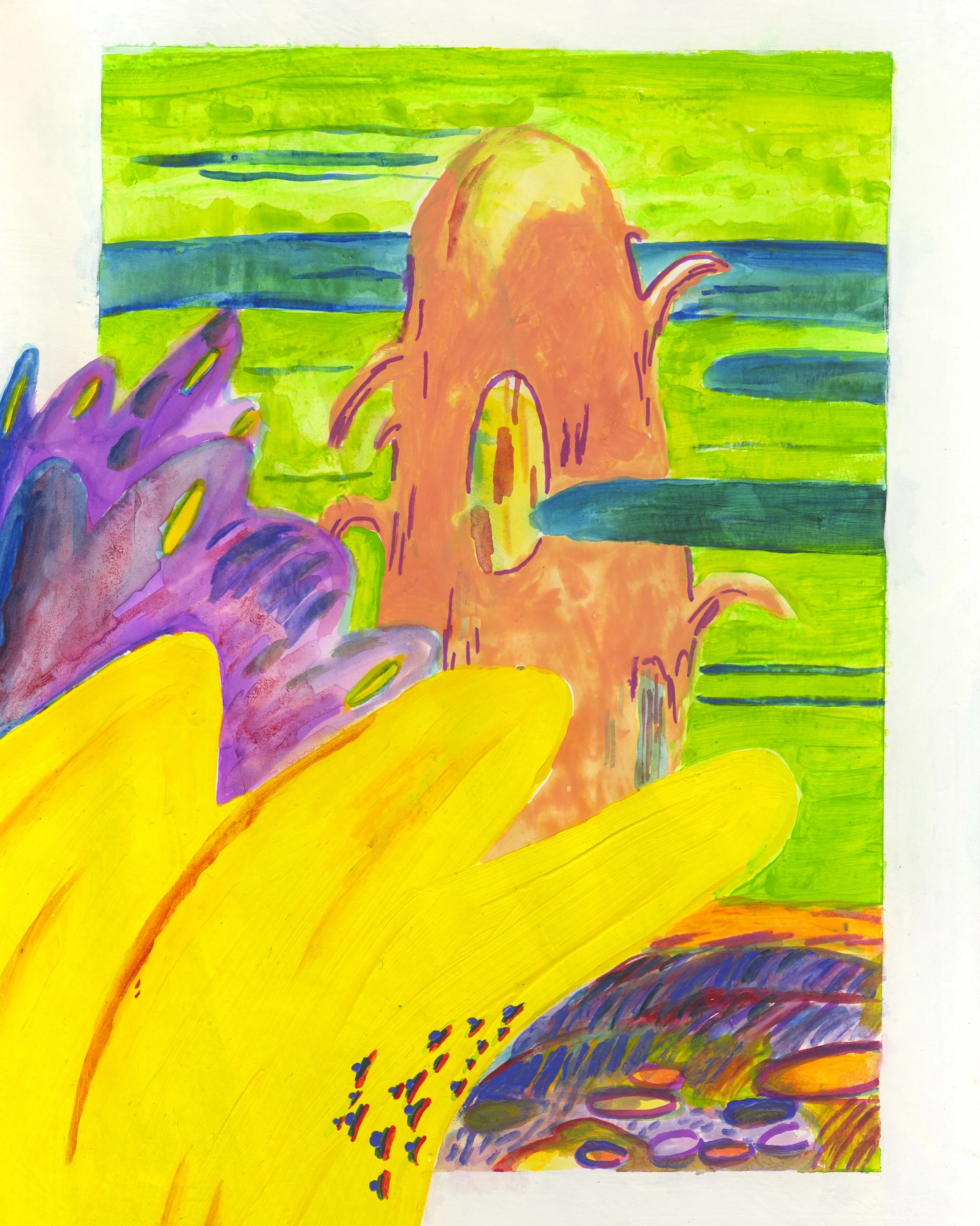Staged - pen, marker, and acrylic paint on paper - 12 x 18 inches